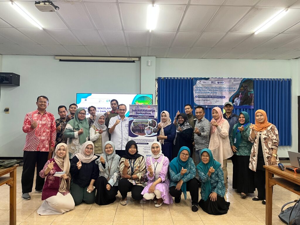 Bogor, 23 Mei 2025 — Direktorat Pengembangan Masyarakat dan Agromaritim IPB University bekerja sama dengan Departemen Ilmu Keluarga dan Konsumen menyelenggarakan kegiatan Sosialisasi Sekolah Keluarga Berkualitas (SKB) dan Focus Group Discussion (FGD) di Agribusiness and Technology Park (ATP), IPB University. Kegiatan ini bertujuan memperkuat peran strategis keluarga dalam membentuk generasi yang sehat, cerdas, dan produktif, sebagai bagian dari upaya menyongsong bonus demografi serta mewujudkan visi Indonesia Emas 2045.